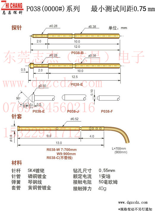 产品名称: P038测试针 产品备注: PCB光板测试系列
