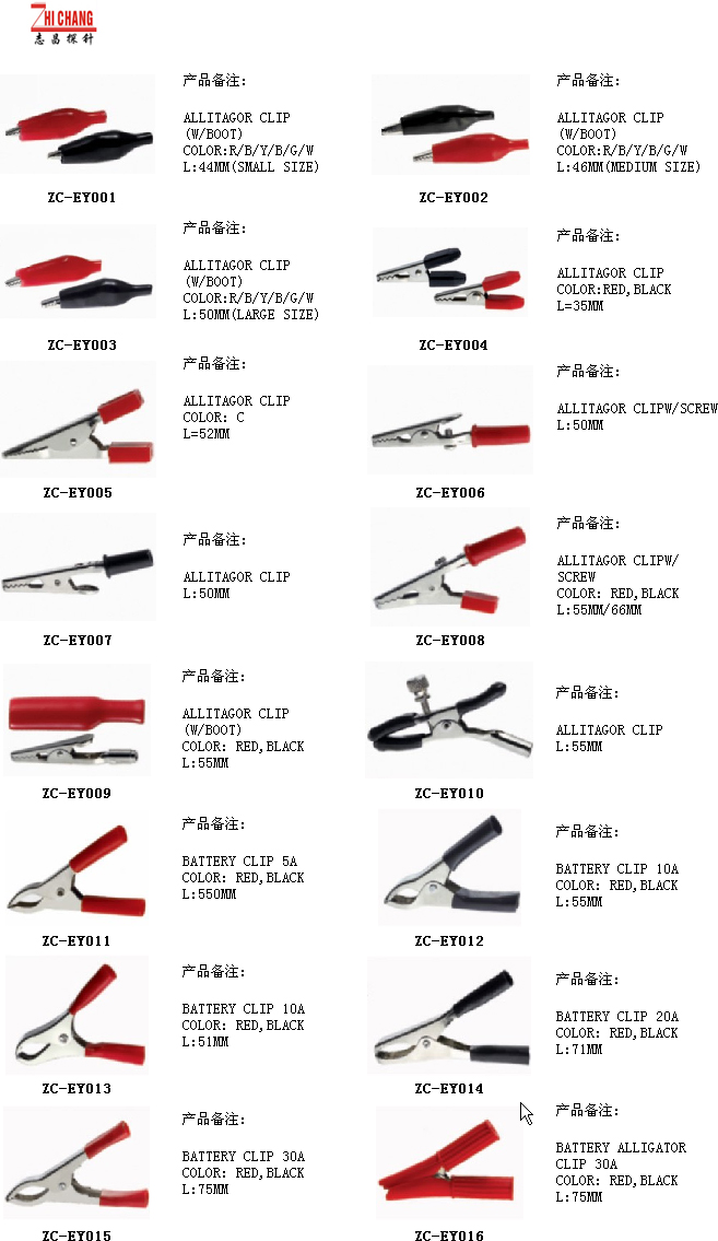 产品名称: 鳄鱼夹 产品备注: 点击图片进入(各种鳄鱼夹)