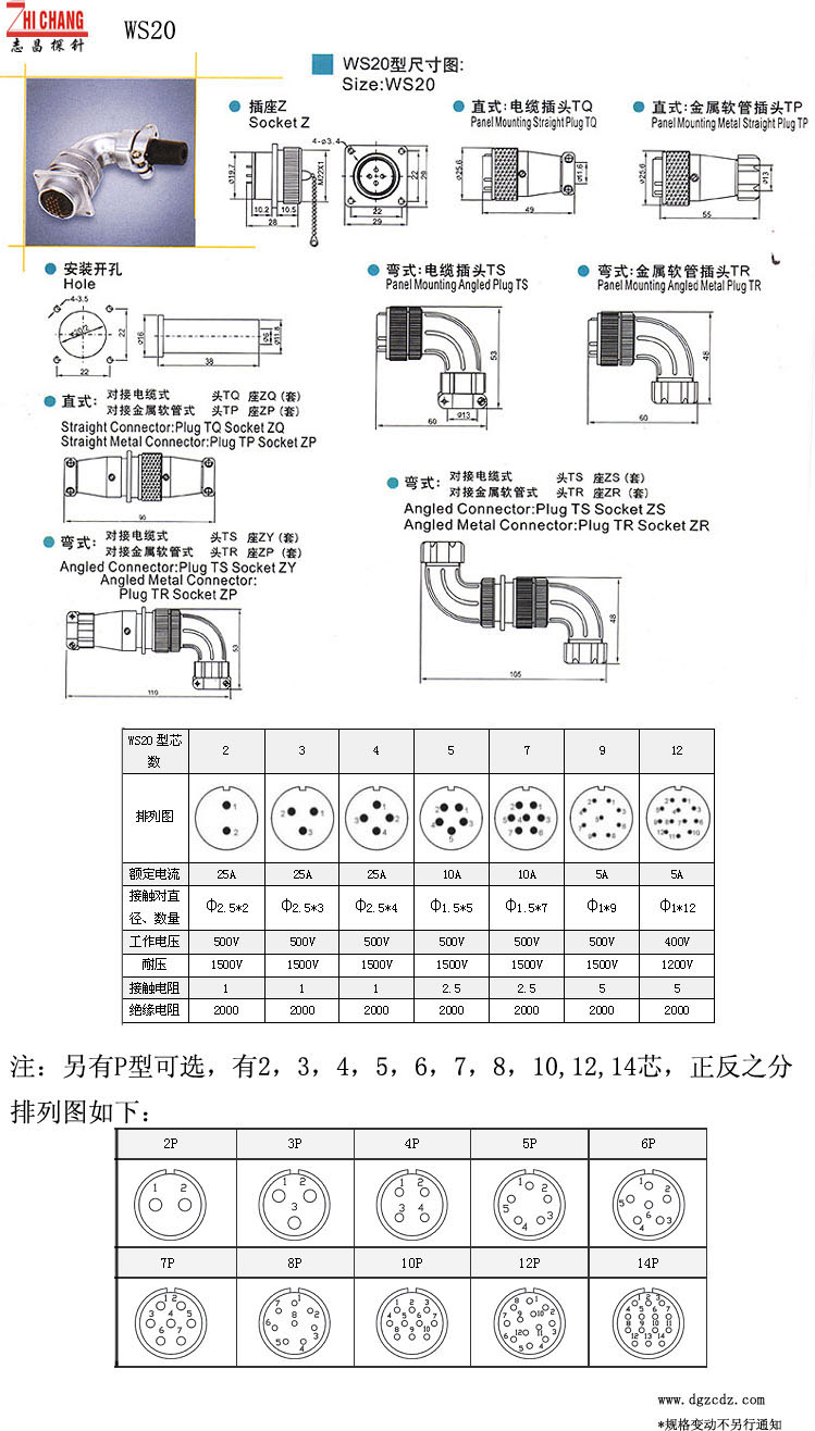 规  格: 航空插头(防水插头) 产品类别: WS20型连接器(P20)