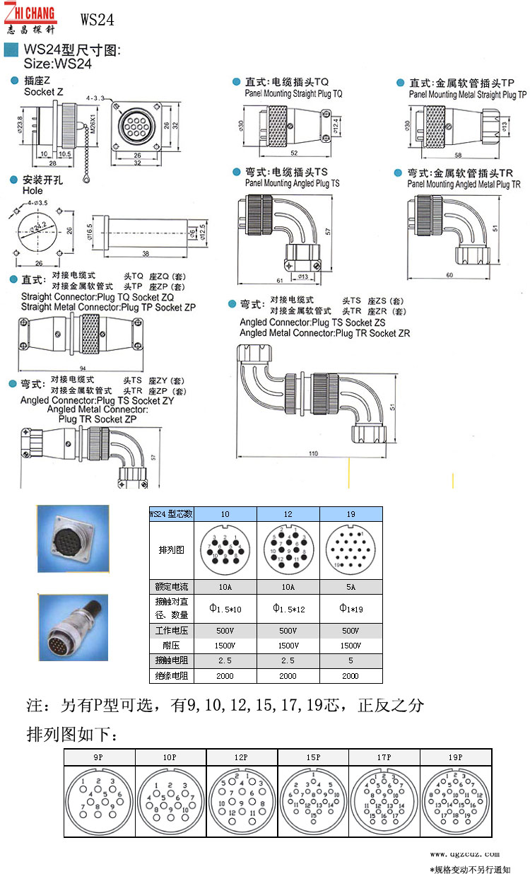 规  格: 航空插头(防水插头) 产品类别: WS24型连接器(P24)