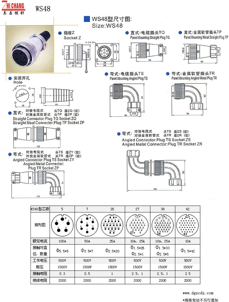规  格: 航空插头(防水插头) 产品类别: WS48型连接器