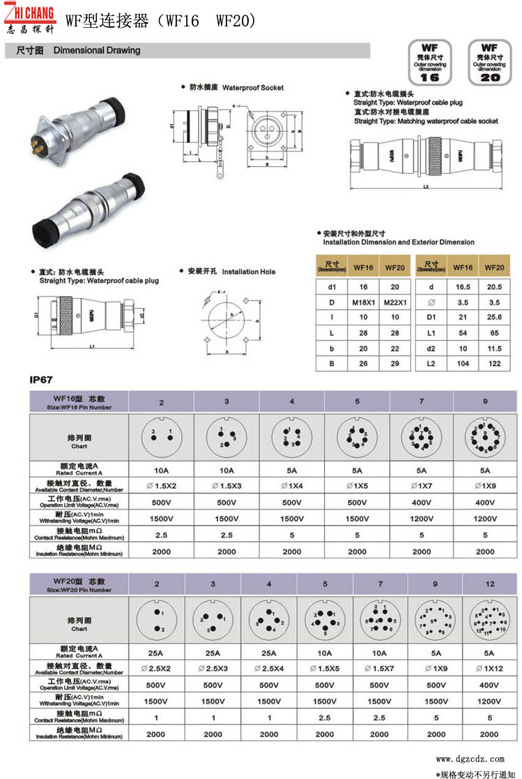 规  格: 航空插头(防水插头) 产品类别: WF16-20连接器