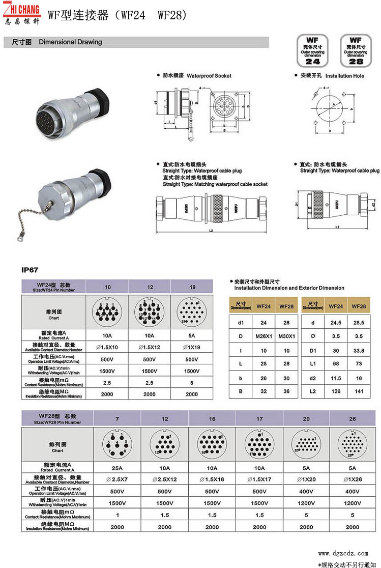 规  格: 航空插头(防水插头) 产品类别: WF24-28连接器