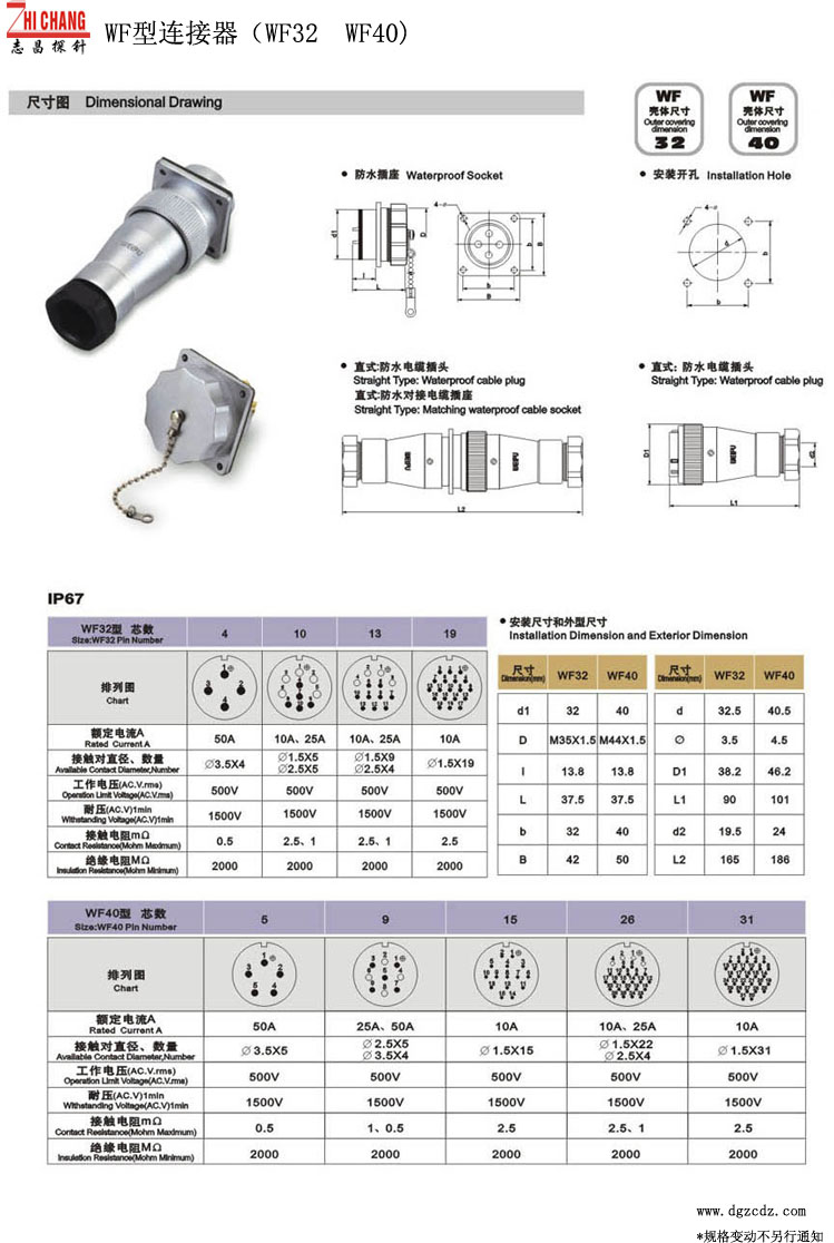 规  格: 航空插头(防水插头) 产品类别: WF32-40连接器