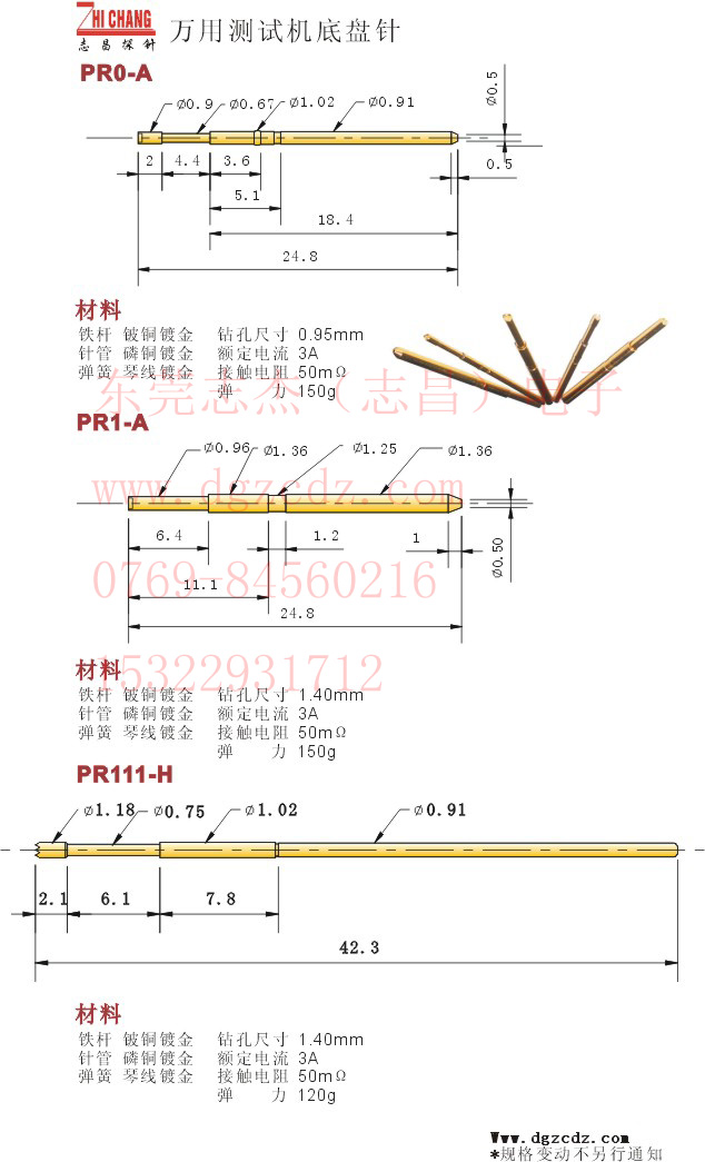 万用测试机底盘针PR0-A,PR1-A,PR111-H