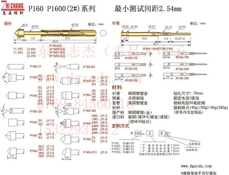 产品名称: P160系列测试针 产品备注: PCB光板测试系列