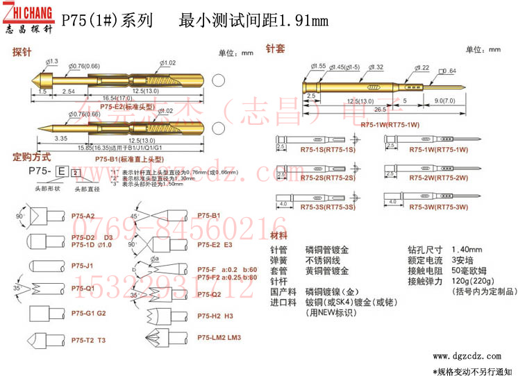 产品名称: P75系列测试针 产品备注: PCB光板测试系列