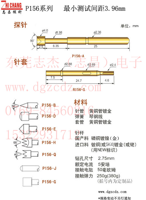产品名称: P156系列测试针 产品备注: 功能测试系列