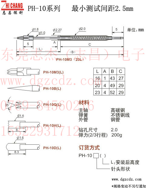 规  格: 探针系列 产品类别: PH-10系列测试针