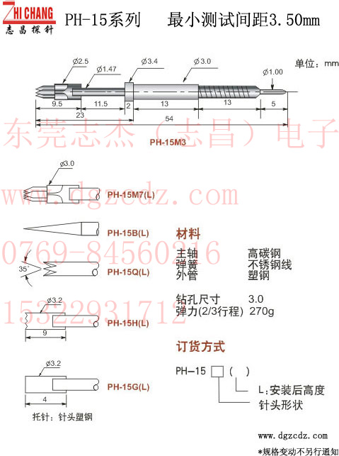 规  格: 探针系列 产品类别: PH-15系列测试针