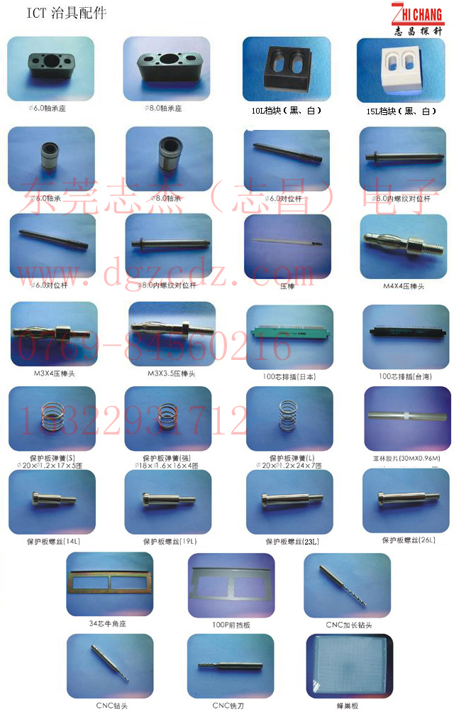 轴承座,档块,轴承,对位杆,轴承杆,压棒,压棒头,菲林胶片,保护板螺丝,100芯排插,保护板弹簧,100P前档板,钻头