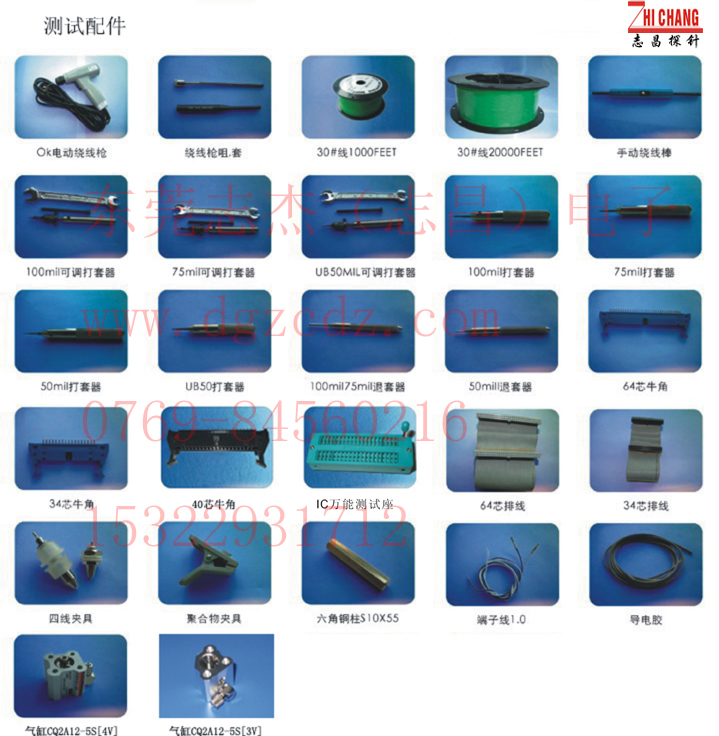 产品名称: 测试配件 产品备注: OK线,排线,测试座,打套器,牛角,气缸